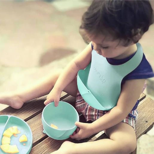 Babero de silicona menta, un babero plegable de silicona para tu bebé.