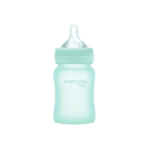 Biberón de cristal 150 ml menta, un biberón de 150 ml en cristal de borosilicato color menta.