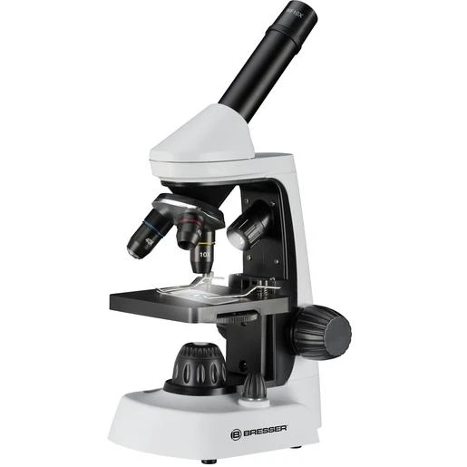 Bresser – Microscopio Junior 40-2000x, un microscopio Bresser Junior con un elegante diseño blanco y negro.