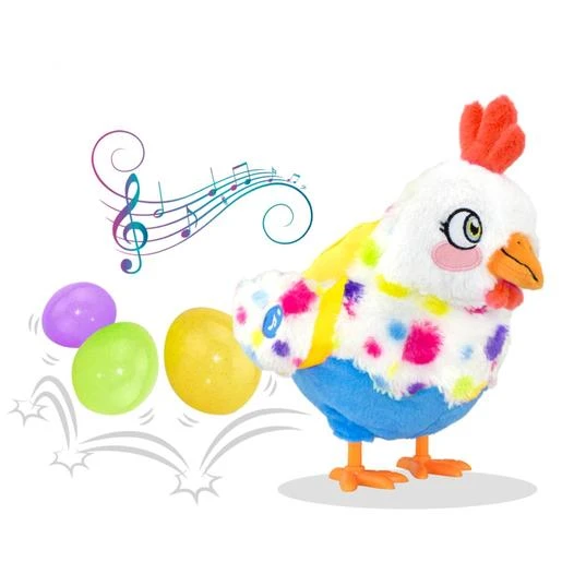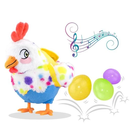 Esta gallina de juguete pondrá los huevos mientras baila con una música muy divertida.