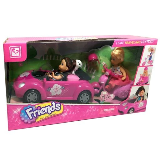 Set Muñecas con Coche y Motocicleta, un playset con dos vehículos y dos muñecas.