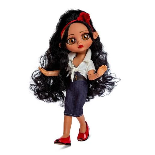 The Biggers – Delux Amy articulada. Una muñeca de colección que representa una historia y distintos lugares a los que pertenecen los Biggers. Ellos son muñecos articulados hechos totalmente de vinilo. Cada modelo está vestido representando su personalidad y el lugar de donde proviene. Se les puede poner y quitar la ropa y los zapatos. El pelo está fabricado con nylon y es de distintos colores y formas, y además tiene un delicioso aroma a vainilla.